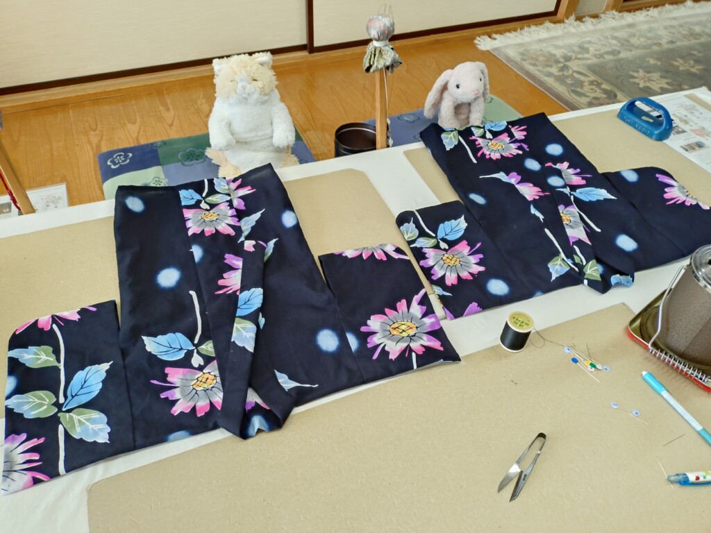 中学生の職場体験!! Posted on 2024年11月29日2024年11月29日 by admin いつも第2学年の生徒さんが、希望した事業所に自宅から出勤(?)します。 今年当方では2人の生徒さんに紺色のゆかたを作成してもらいました。 昨年より、生徒さんが持参された「ぬいぐるみ」に着付けしています。